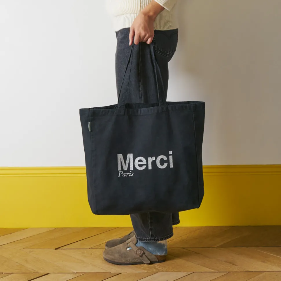 L’iconique tote bag Merci deviendra votre allié du quotidien. Emportez un peu de Merci partout avec vous grâce à ce t…