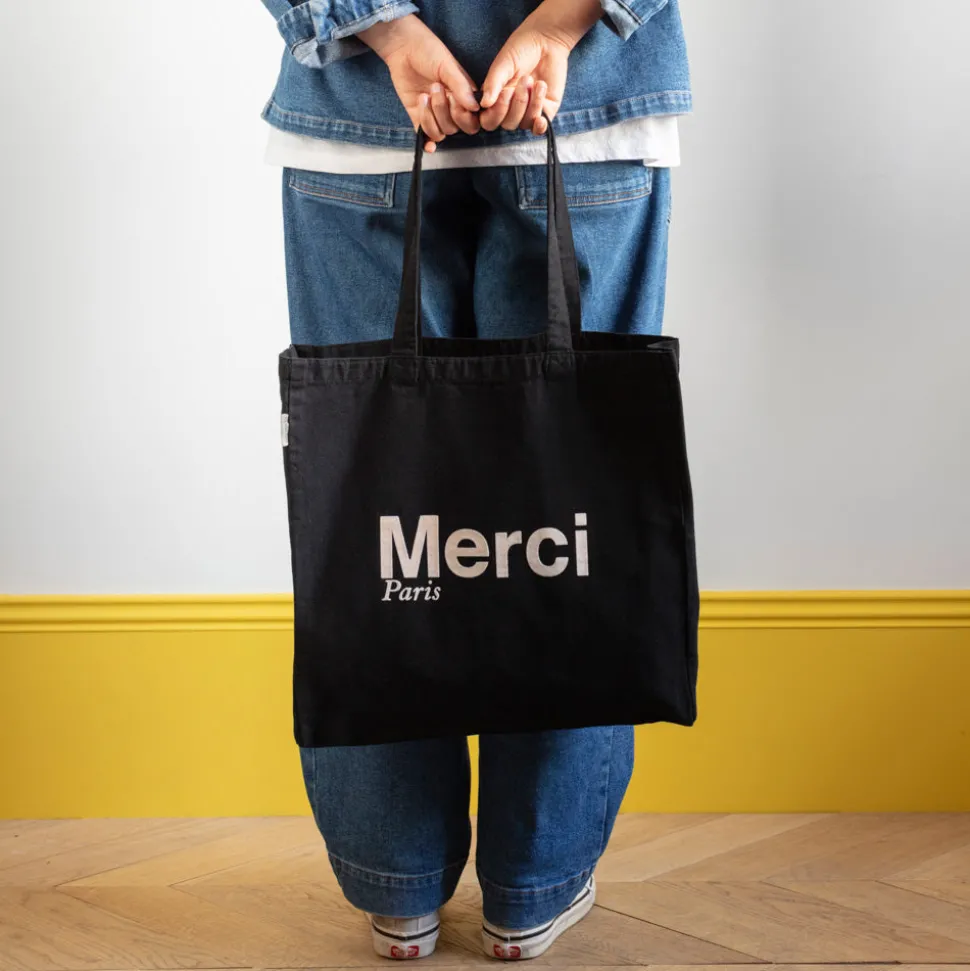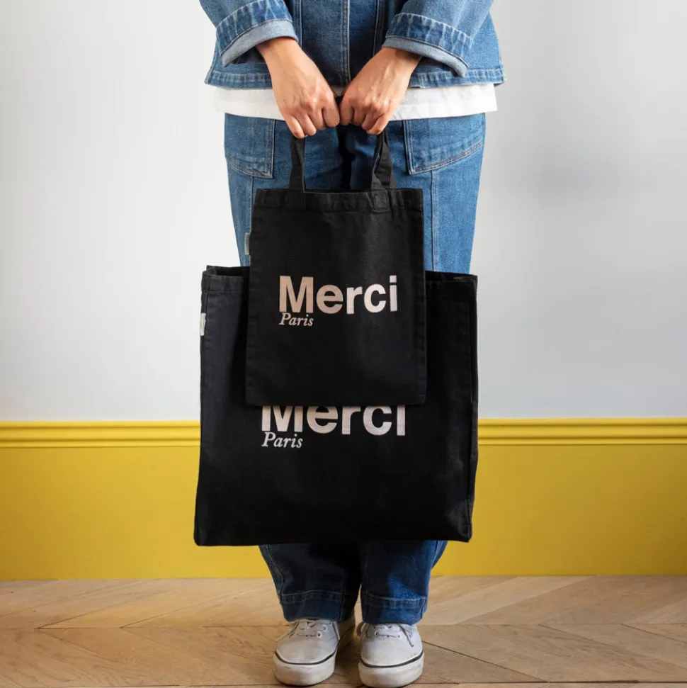 L’iconique tote bag Merci deviendra votre allié du quotidien. Emportez un peu de Merci partout avec vous grâce à ce tote bag pratique et résistant.