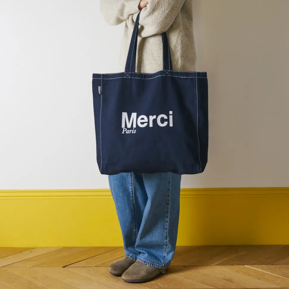 L’iconique tote bag Merci deviendra votre allié du quotidien. Emportez un peu de Merci partout avec vous grâce à ce tote bag pratique et résistant.
