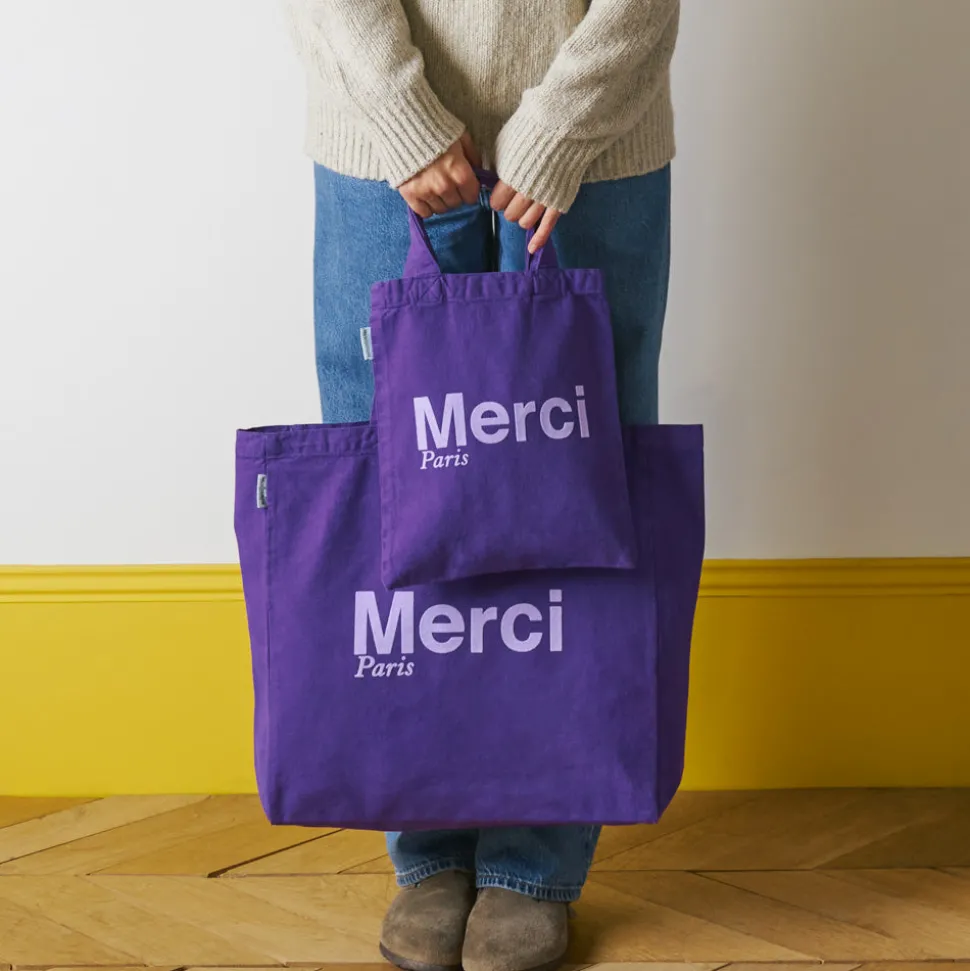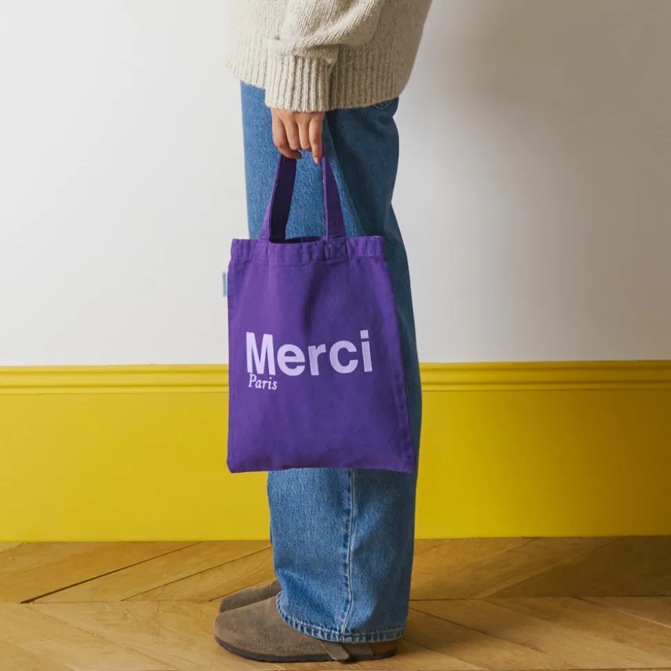 L’iconique tote bag Merci deviendra votre allié du quotidien. Emportez un peu de Merci partout avec vous grâce à ce tote bag pratique et résistant.
