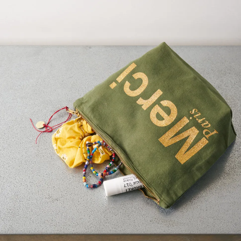 Femme V01 Trousses De Toilette|Pochettes-Merci – Pochette en coton – Kaki & Doré