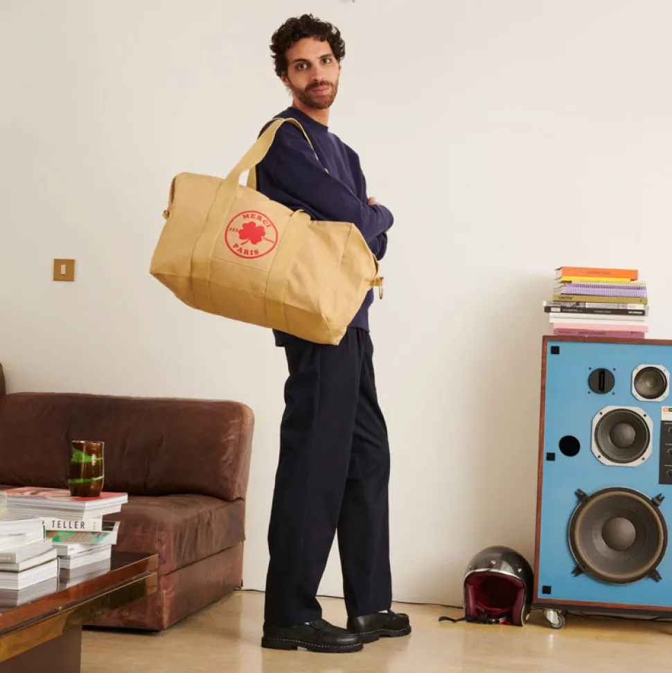 Nouvel iconique de Merci, le sac weekender a été pensé pour les grands voyageurs qui, sur un coup de tête, s’évadent à l’autre bout du monde ou à la lisière de la ville pour 48h. Élégant et surtout pensé pratique il se porte à la main comme à l’épaule (anse amovible).