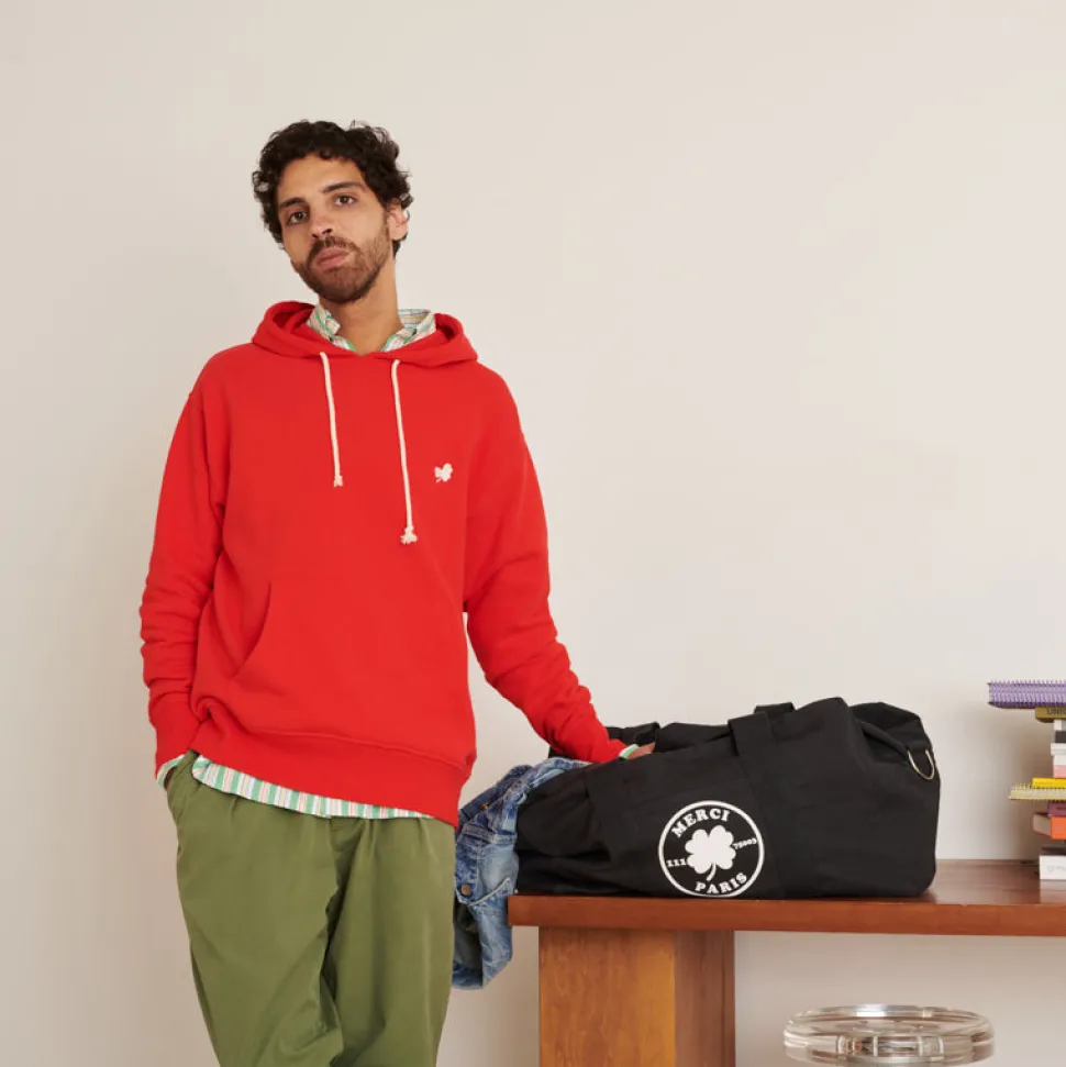 Nouvel iconique de Merci, le sac weekender a été pensé pour les grands voyageurs qui, sur un coup de tête, s’évadent à l’autre bout du monde ou à la lisière de la ville pour 48h. Élégant et surtout pensé pratique il se porte à la main comme à l’épaule (anse amovible).