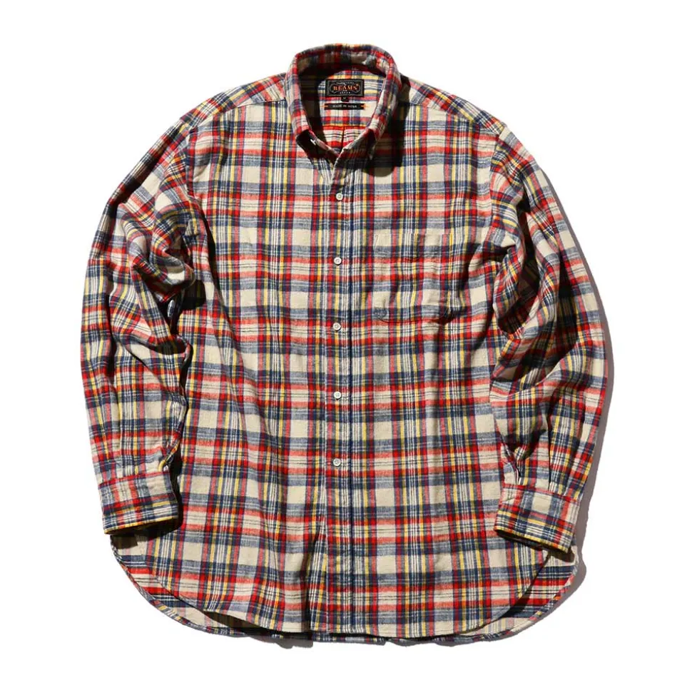 Homme BEAMS L’esprit Merci|Chemises-Plus – Chemise Brushed Flannel – Blanc