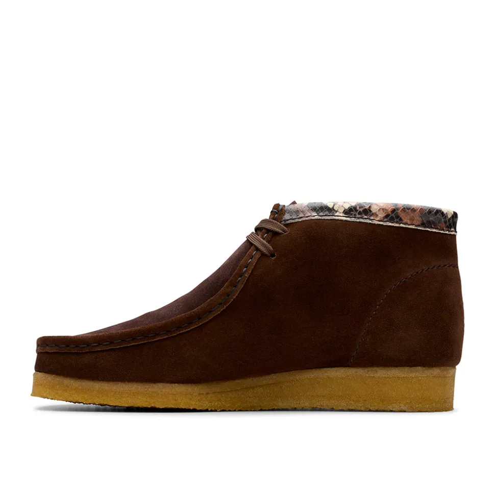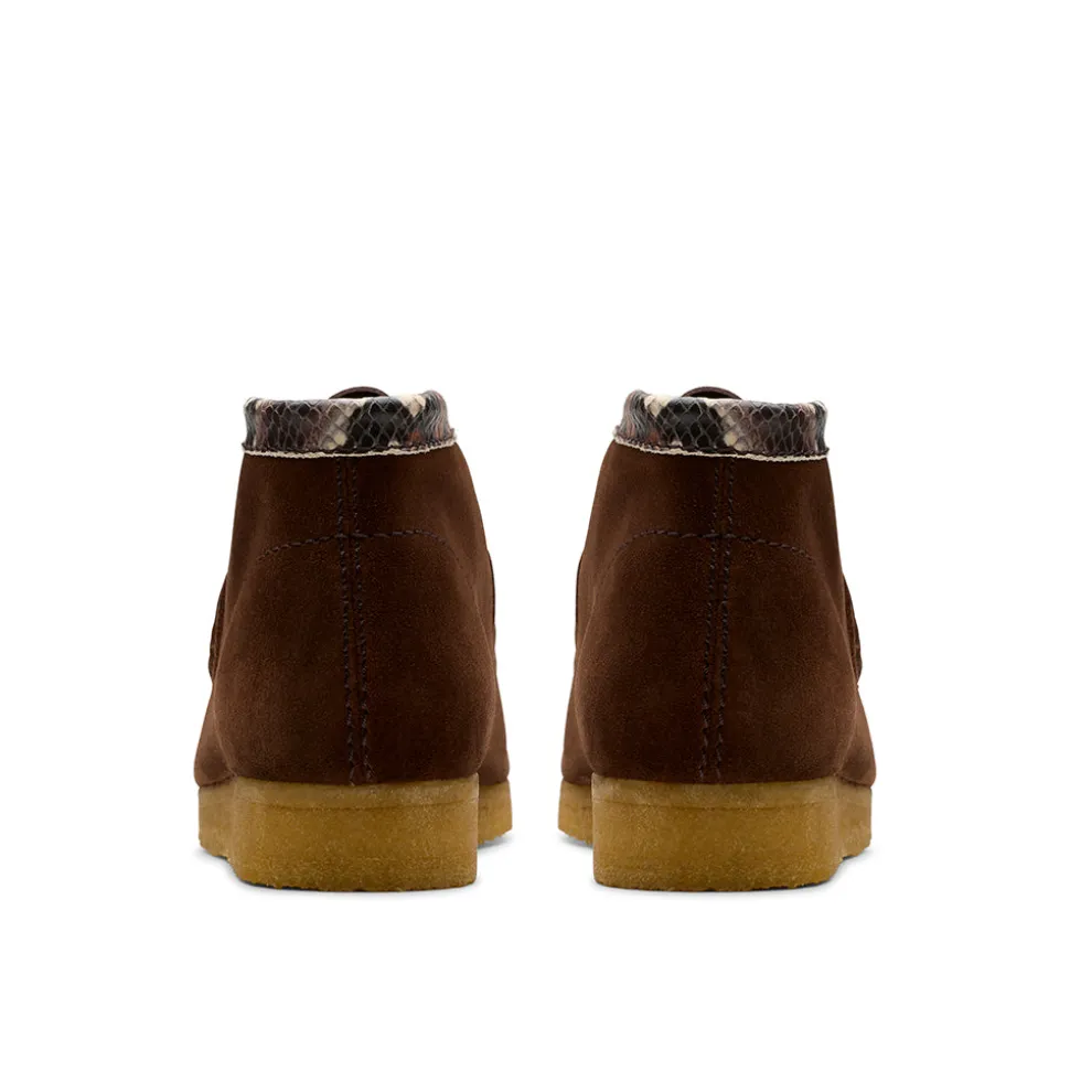 Tige premium en daim marron avec empeigne en daim texturé et col en cuir effet serpent