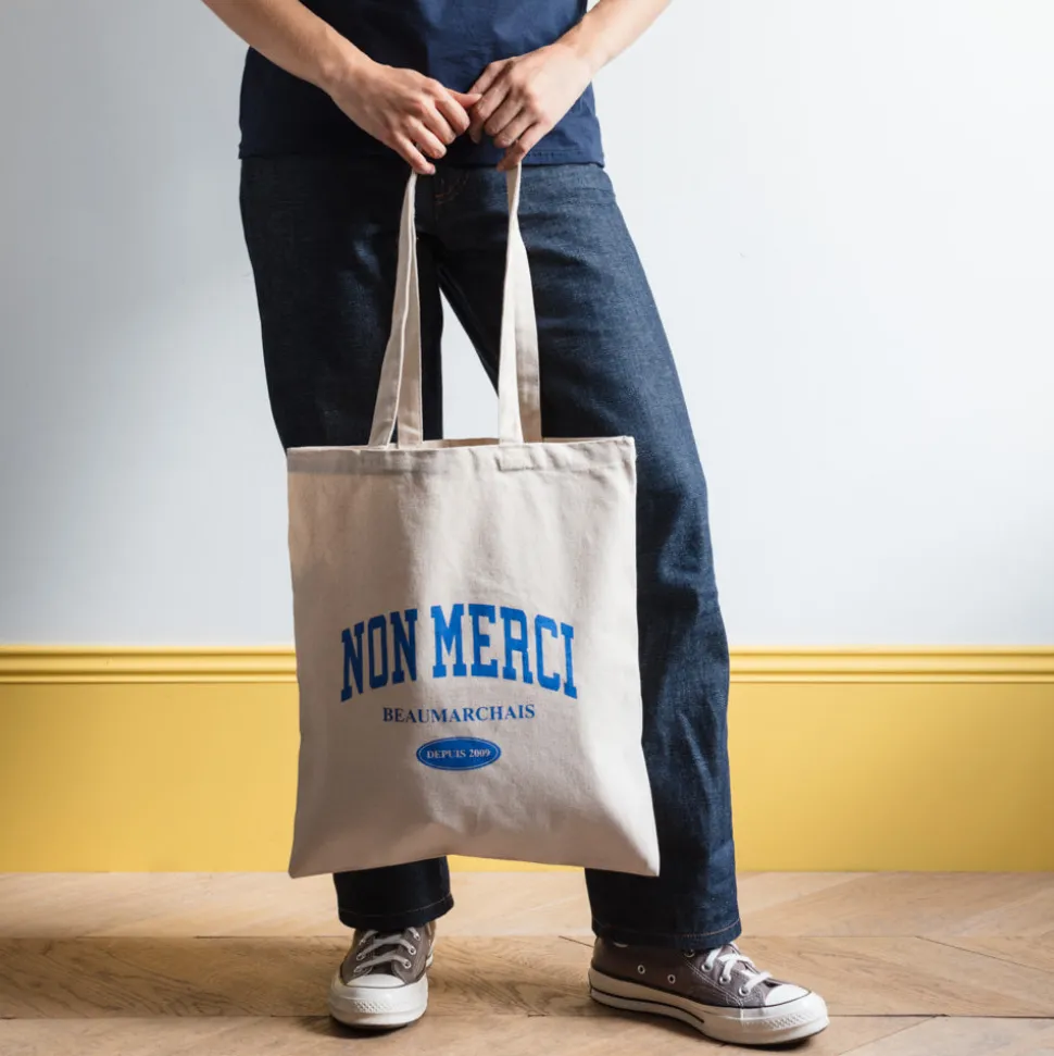 Homme M05 Sacs-Merci – Sac Tote Bag College Non Merci – Bleu