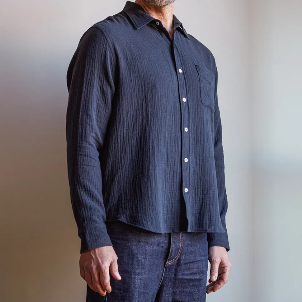 Homme MERCI Chemises– Chemise Gaspard en gaze de coton – Marine