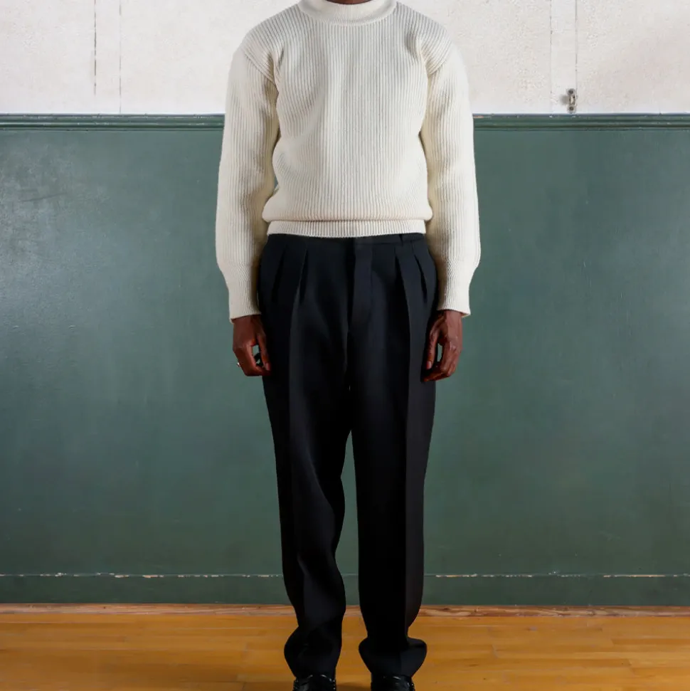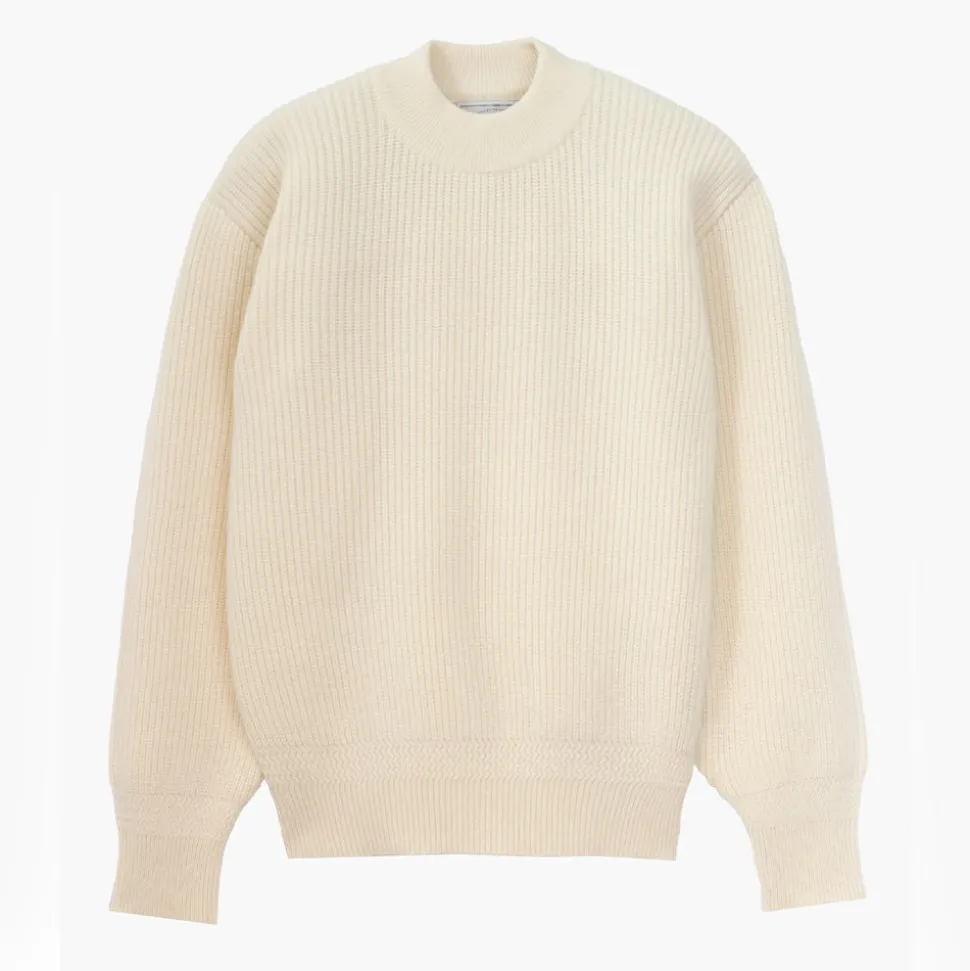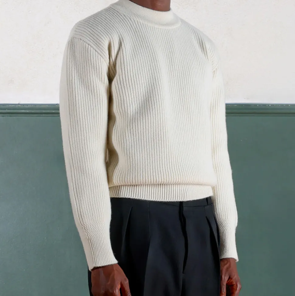 Poignets et bas du corps en côtes larges avec détails en côtes irrégulières
