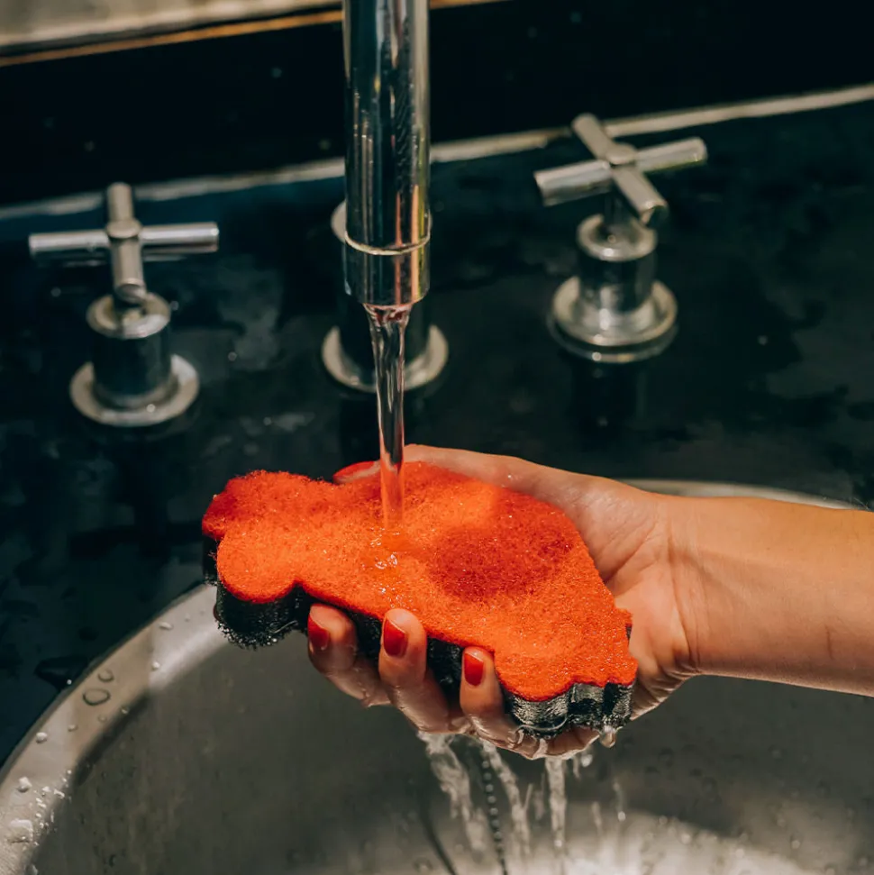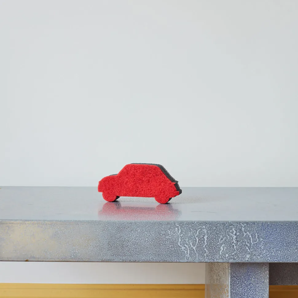 Éponge en forme de voiture rouge, réminiscent de la FIAT 500 emblématique MerciUn indispensable pour laver sa vaissel…