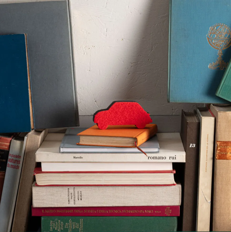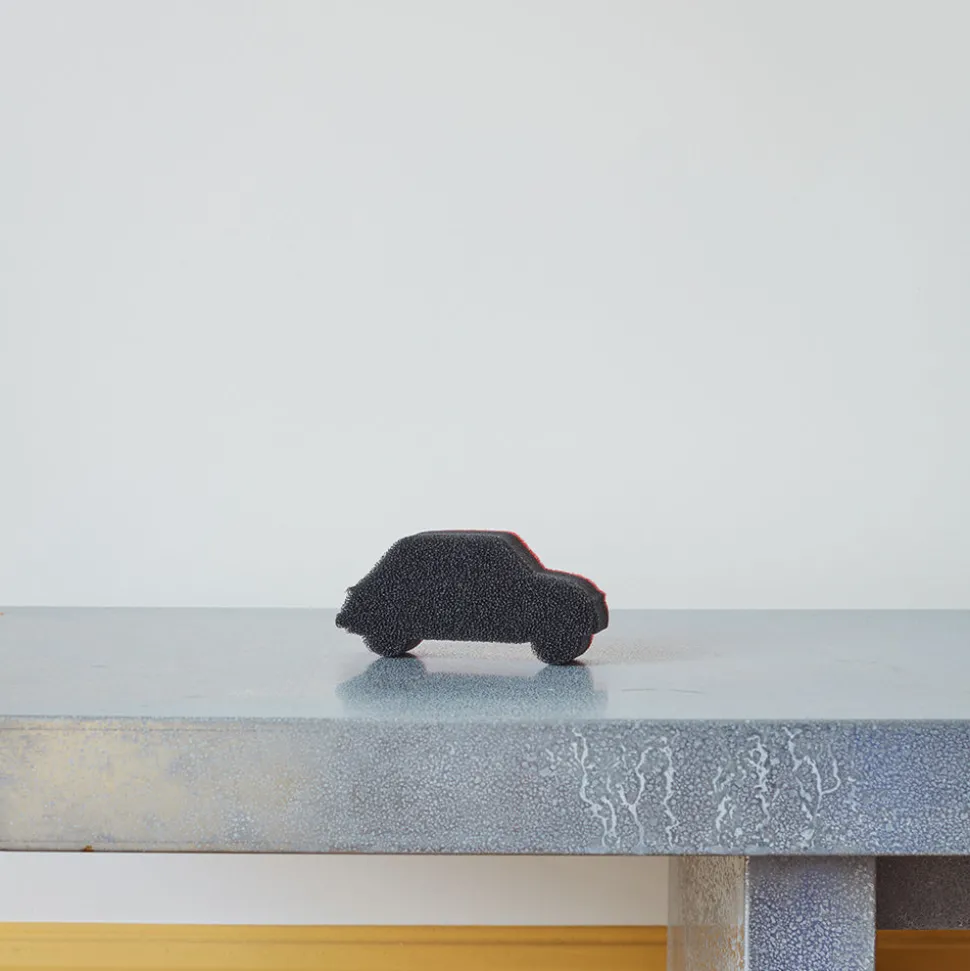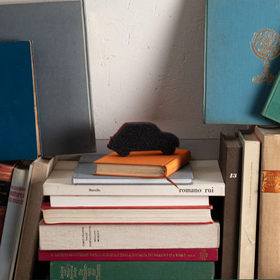 Éponge en forme de voiture rouge, réminiscent de la FIAT 500 emblématique Merci