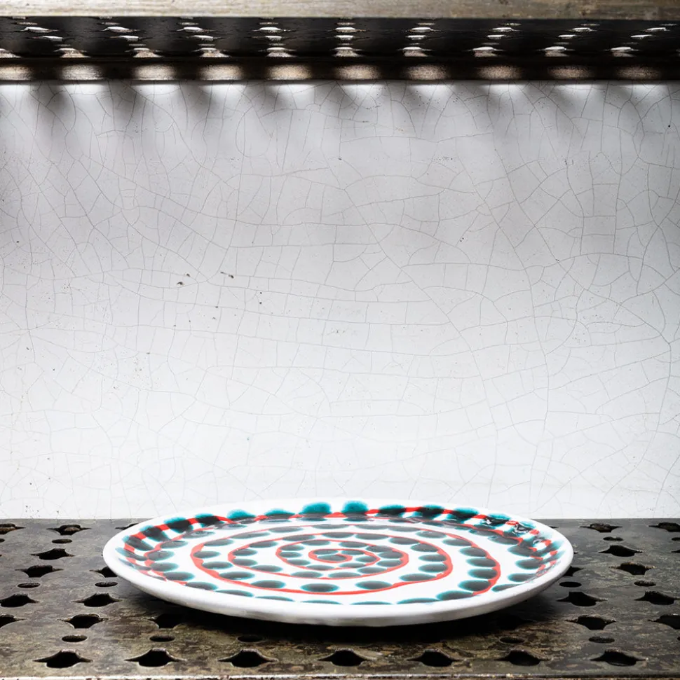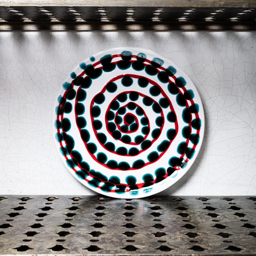 Assiette plate en faïence, pièce unique issue d’une collection exclusive imaginée par la designer Paola Navone