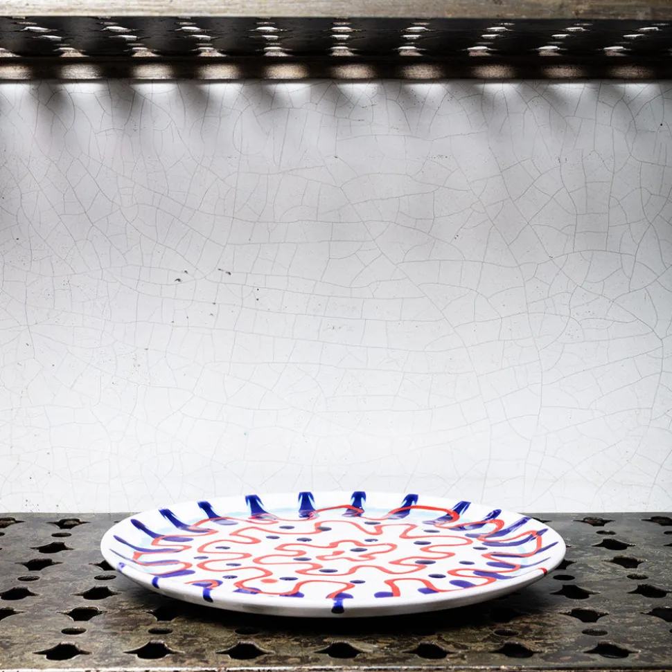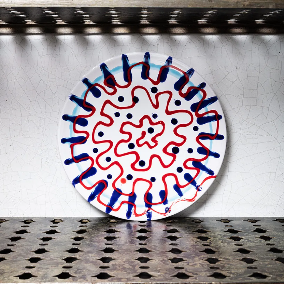 Assiette plate en faïence, pièce unique issue d’une collection exclusive imaginée par la designer Paola Navone