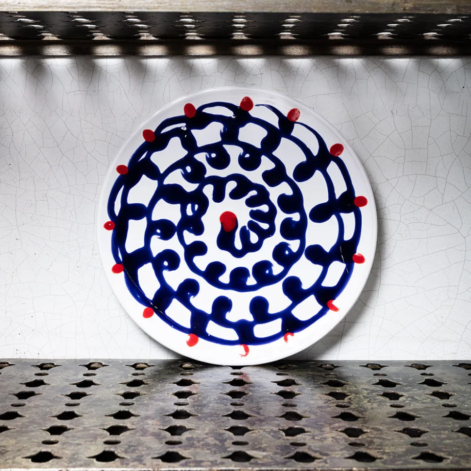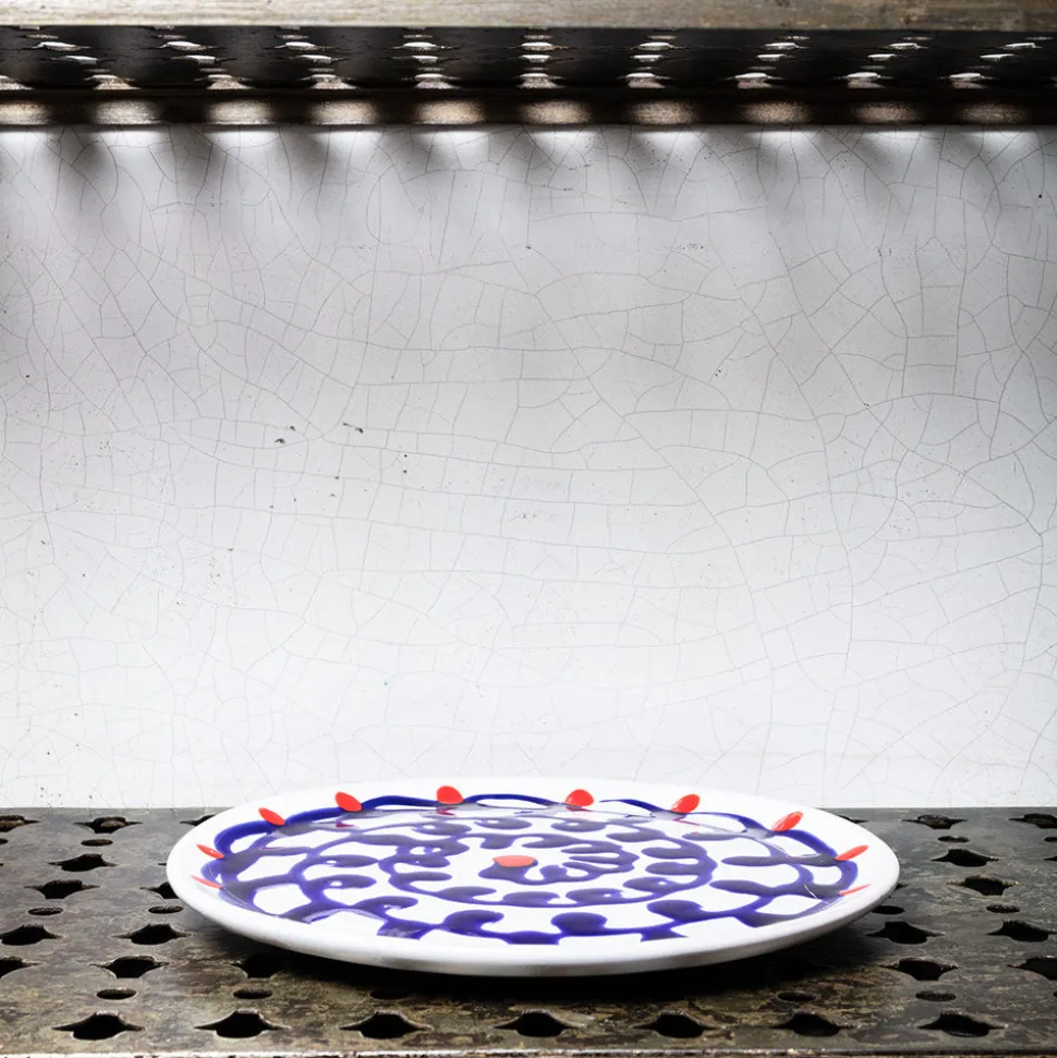 Assiette plate en faïence, pièce unique issue d’une collection exclusive imaginée par la designer Paola Navone