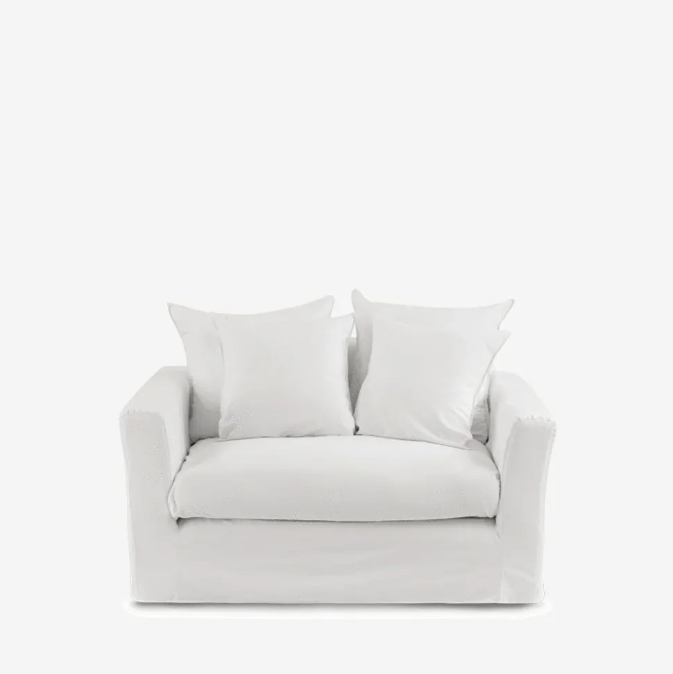 Le canapé Merci 2 places est vendu avec 2 coussins de 65×65 cm et 2 coussins de 55×55 cm. Dimensions : H 77 cm x L 141 cm x P 110 cm
