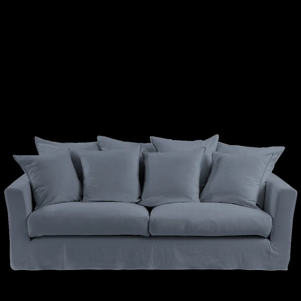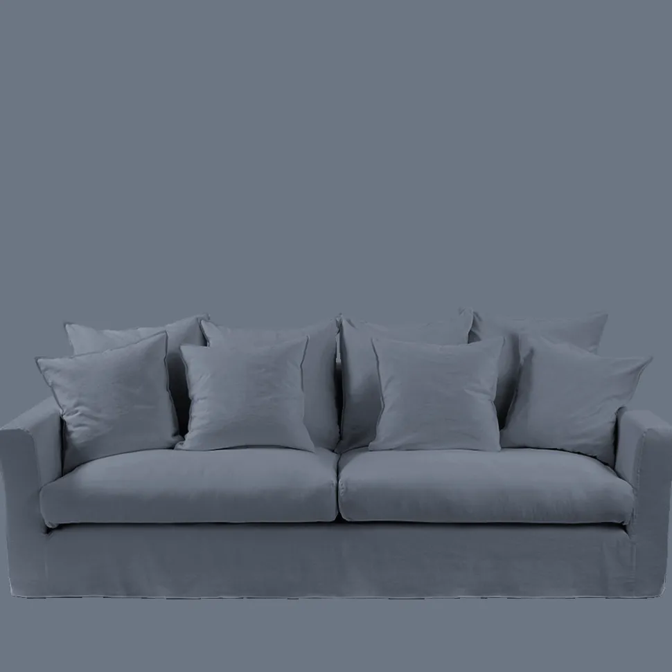 Le canapé Merci 4 places est vendu avec 4 coussins de 65×65 cm et 4 coussins de 55×55 cm. Dimensions: L 243 cm; P 110 cm; H 77 cm