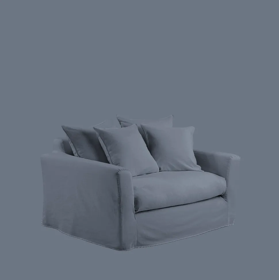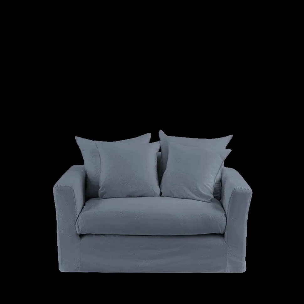 Le canapé Merci 2 places est vendu avec 2 coussins de 65×65 cm et 2 coussins de 55×55 cm. Dimensions : H 77 cm x L 141 cm x P 110 cm