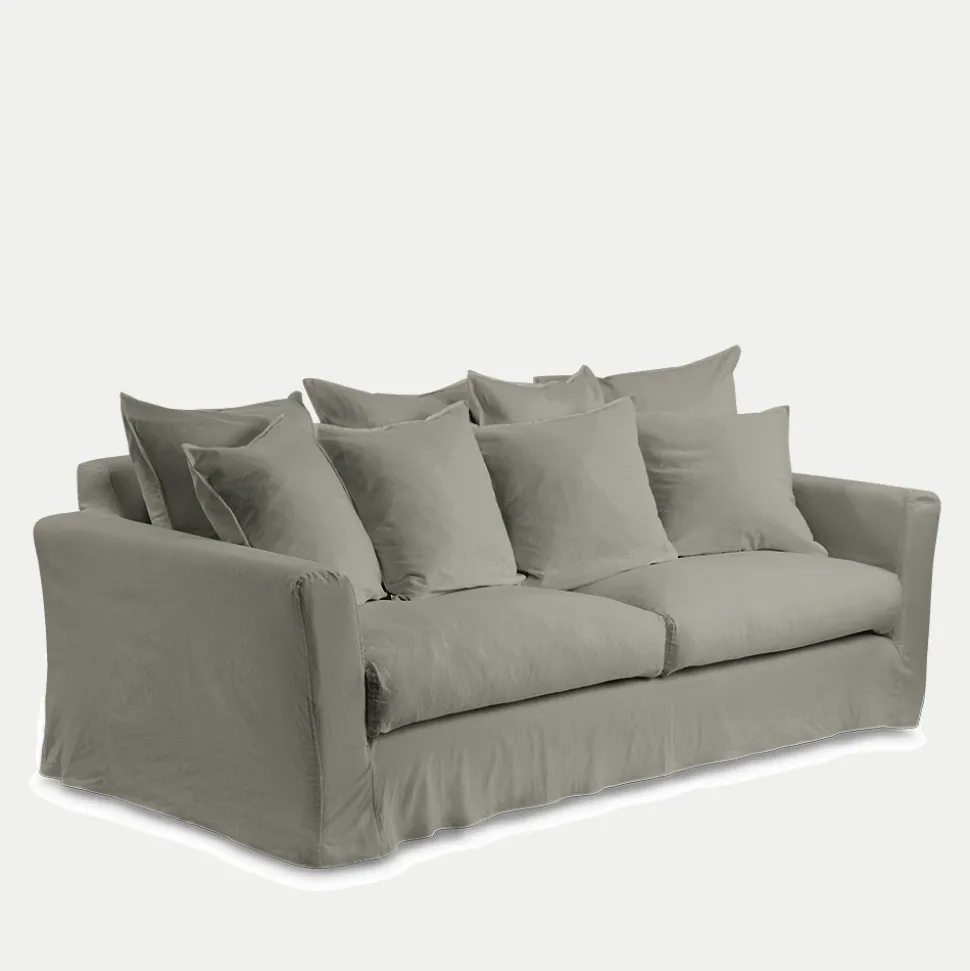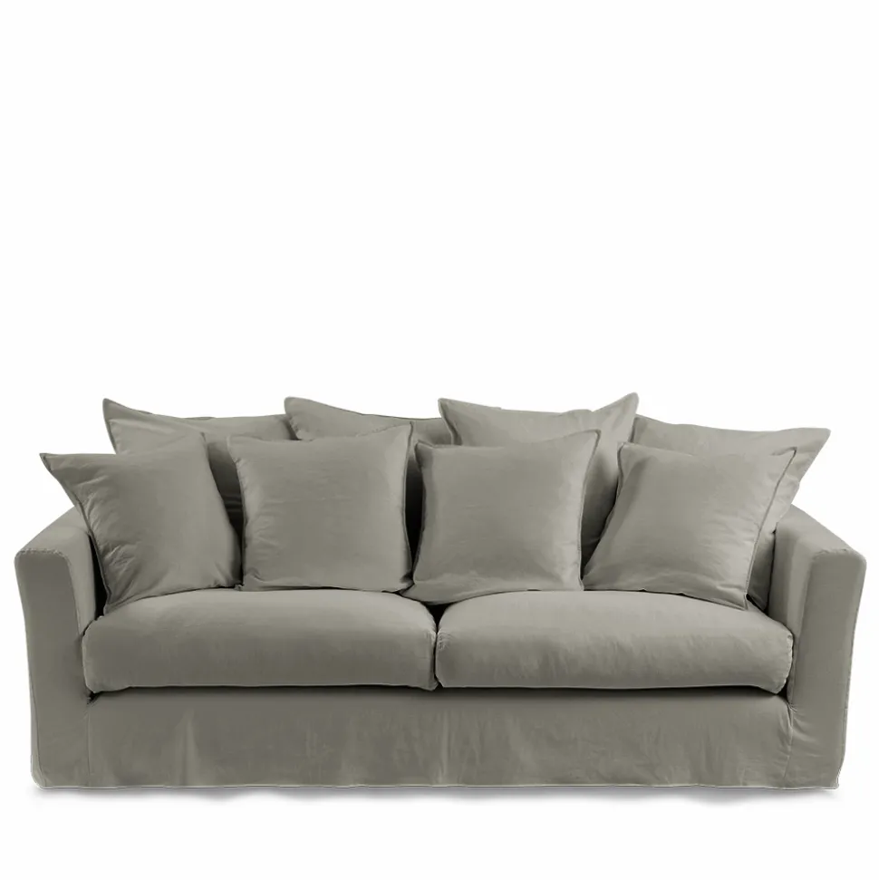 Le canapé Merci 3 places est vendu avec 4 coussins de 65×65 cm et 4 coussins de 55×55 cm. Dimensions: H 77 cm x L 213 cm x P 110 cm