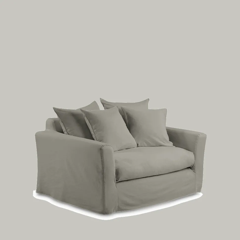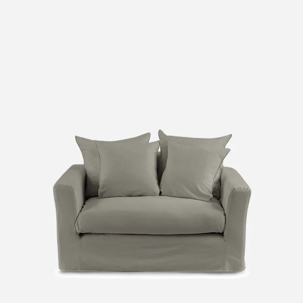 Le canapé Merci 2 places est vendu avec 2 coussins de 65×65 cm et 2 coussins de 55×55 cm. Dimensions : H 77 cm x L 141 cm x P 110 cm