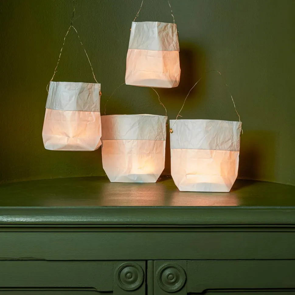 Set de 4 lanterne en papier avec bougie chauffe-plat à poser ou à suspendre pour une ambiance cozy.