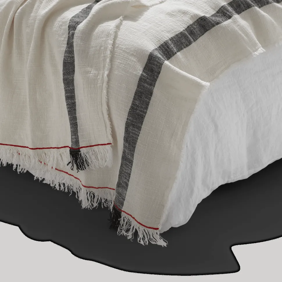 Il peut s’utiliser en plaid ou en jeté de lit pour encore plus de confortFine rayure rouge aux extrémités, mêlée à…
