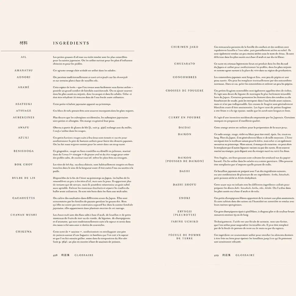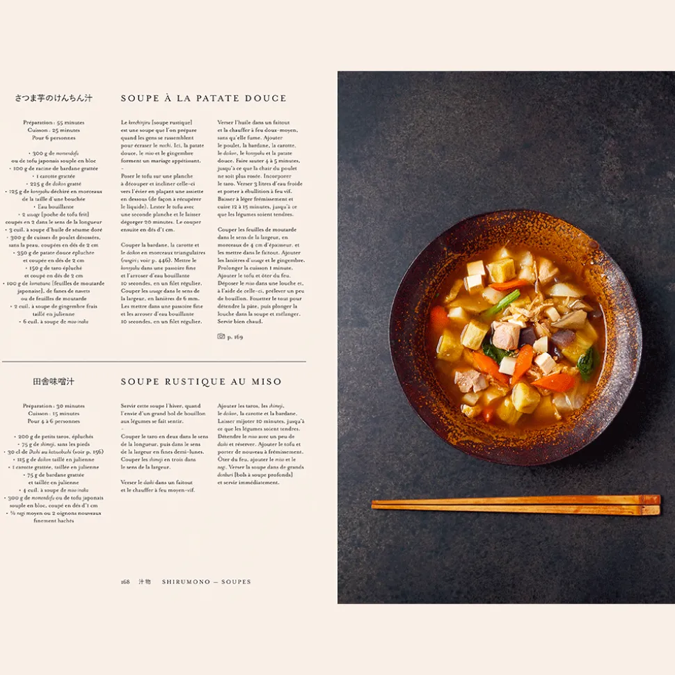 Soupes, nouilles, condiments vinaigrés, fondues, desserts ou encore plats à base de légumes, ce magnifique ouvrage composé de quatre cents recettes offre un tour d’horizon exhaustif de la cuisine nipponne.
